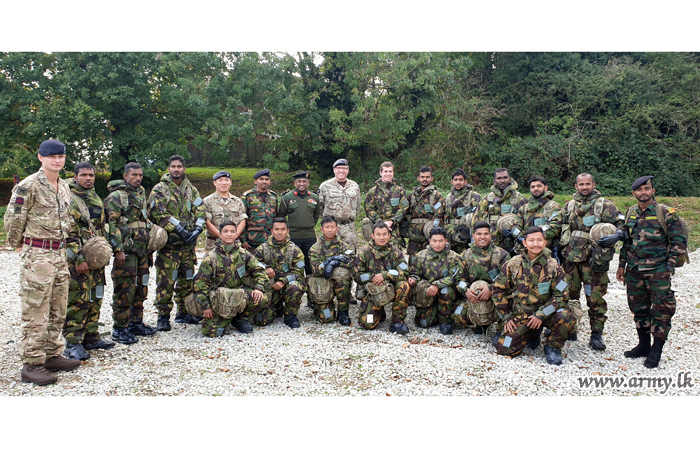 The Sri Lankan team, led by Major Jayantha Rathnayake of the Special Forces was received on arrival by the 36 Engineer Regiment of the British Army and taken to the Regimental Headquarters in Maidston, East of England where the Sri Lankan SF team had to undergo training for the Exercise despite chilly weather patterns.