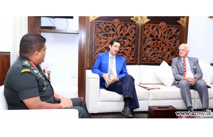 Two representatives of the International Committee of Red Cross (ICRC) Wednesday (23) evening paid a courtesy call on the Commander of the Army, Lieutenant General Shavendra Silva at the Army Headquarters.