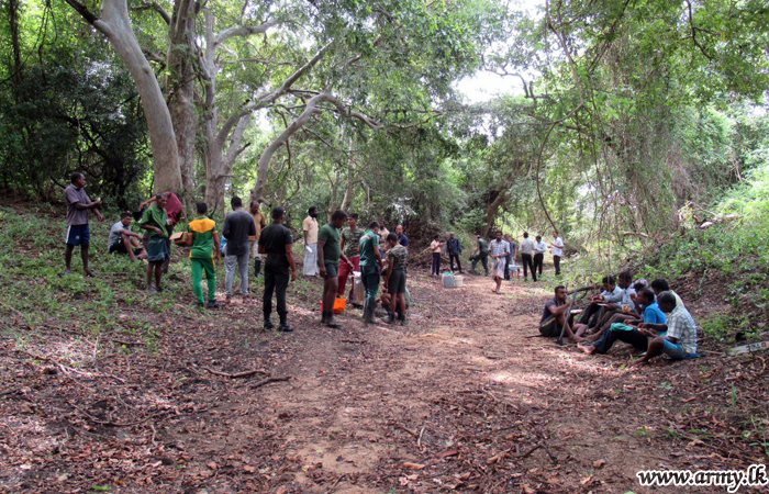 In the face of imminent overflow of the Kanagarayan Aru with monsoon rainy season set in, troops as well as civilians joined hands together and carried out the cleaning project. Major General B. P. S de Silva, the General Officer Commanding 57 Division, and the Commander 573 Brigade, gave their guidelines to the arrangement and got it organized. Troops of the 573 Brigade participated in the entire day's 'Shramadana' campaign with civilians.