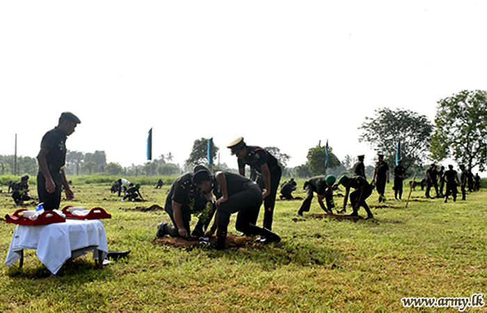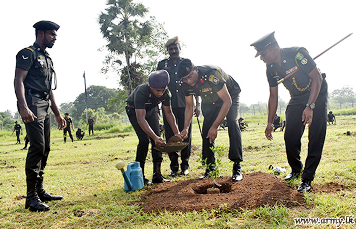 To be in parallel with the going 'Thurueenuwen Api', 'Wana Ropa', 'Environment is sacred' Projects, a programme, themed “Parisara Punarudhaya” was launched with several tree planting drives inside camp premises of military establishments island-wide. As a part of the Wanni contribution, Security Force Headquarters – Wanni (SFHQ-W) conducted a tree planting programme on Thursday (7) under the guidance of the Commander Security Force (Wanni) Major General Jagath Gunawardena.