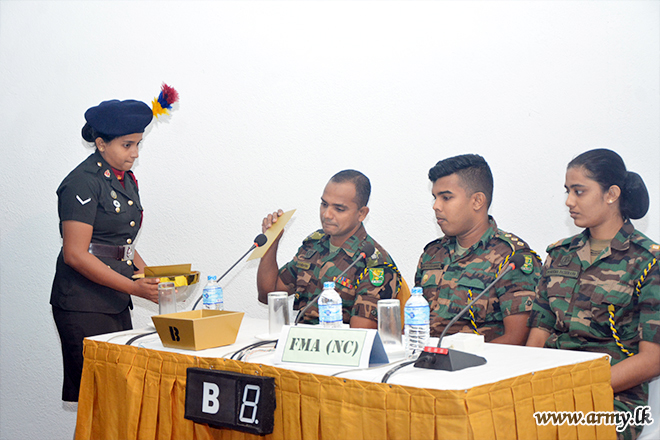 After several rounds, the team of 3 Squadron of Sri Lanka Service Corps emerged as winners in the Inter Division Quiz Competition - 2019 securing 170 marks while the team of 2 Mechanized Infantry Regiment achieved the second place by obtaining 140 marks.