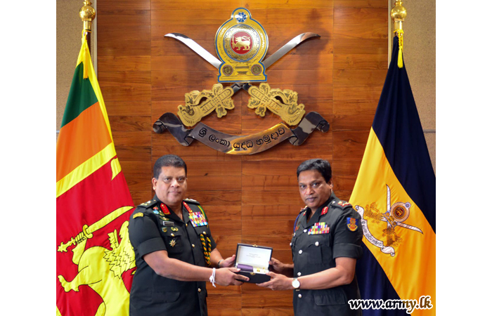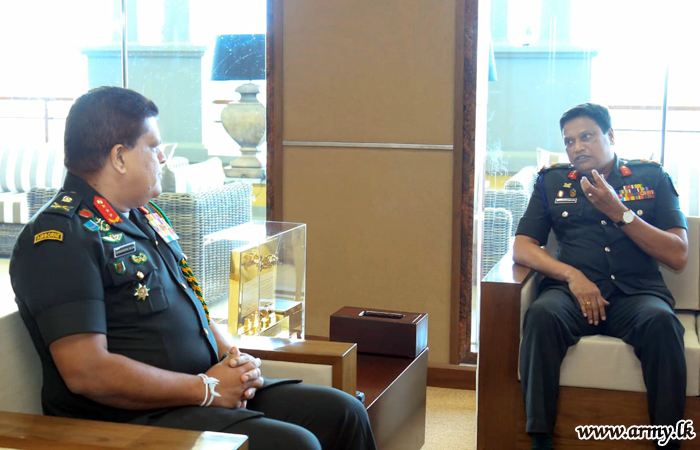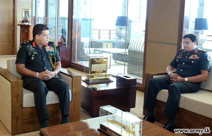 During the brief but cordial meet at the Army HQ, the Commander recalled a few of his dedicated roles in the past and shared thoughts with him. Towards the end of the interaction, Lieutenant General Silva presented a memento to him and wished him good luck for his future endeavours.