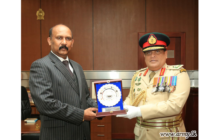 Lieutenant General Silva was among the firsts to extend courtesies to the new Secretary Defence after he assumed office at the Ministry. During the brief courtesy meeting, both of them shared a few thoughts and touched on general matters of concern.