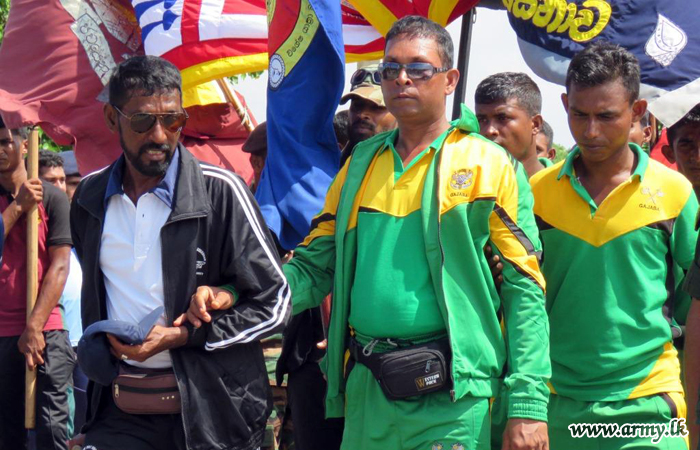 The two retired veterans, Private (Retd) R.W.V Piyathissa of 2nd Battalion Gajaba Regiment of the Army and the Chief Petty Officer (Retd) M.B.W Kumara of the Sri Lanka Navy who jointly commenced a foot pilgrimage to Kataragama from Nagadeepa temple in the Jaffna peninsula on Friday (22) reached Elephant Pass on Sunday (24) to be greeted to a warm welcome, organized by the 66 Division Headquarters.