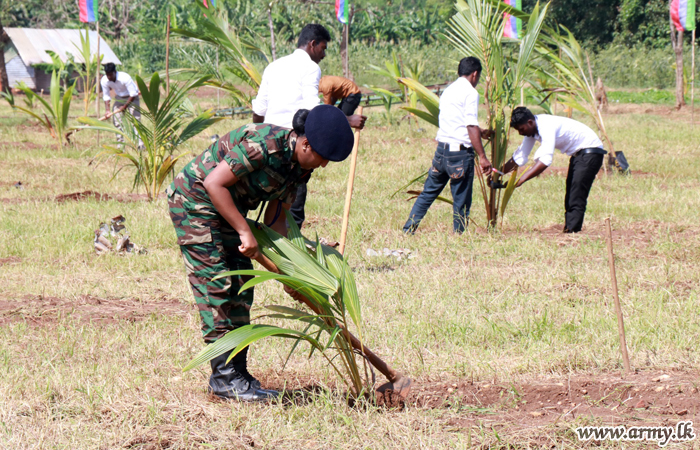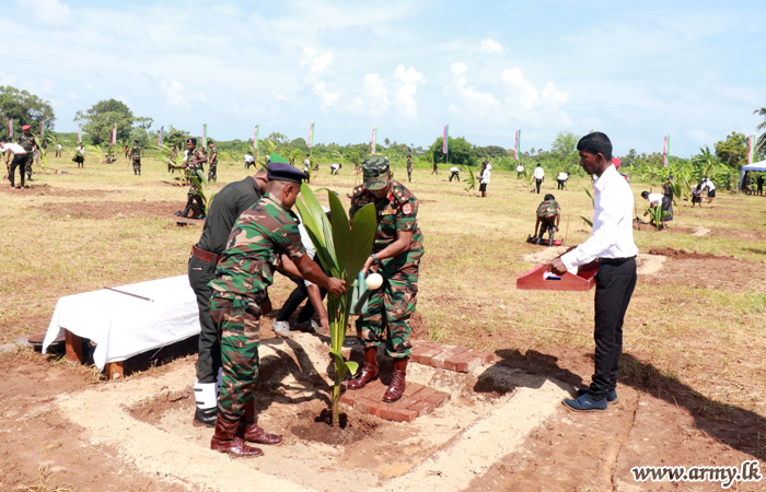 The Security Force Headquarters - Jaffna (SFHQ-J) launched this initiative to experiment and explore whether coconut cultivation is possible in the Northern Province. Officials in the Coconut Research Institute, SFHQ-J Senior Officers and Other Ranks were present during the programme. |
