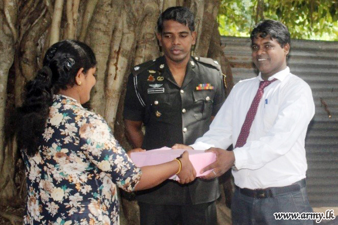 With the close cooperation of the 663 Brigade area under the 66 Division in Karachchi and Pooneryn, the Divisional Secretariat gave away solar panels to ten poor families in Vannerikulam, Jayapuram, Veravil and Vallaipadu areas for generation of power for their homes on Thursday (21).