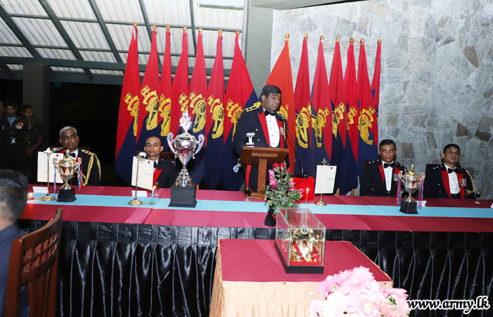 After the comprehensive presentation, certificate-awarding ceremony started. During the ceremony, 2/Lieutenant H.G.J.K.D Pathiraja was awarded the "Silver Gun" as he became the first in order of merits, based on best overall performances in the course. The culmination of the entire event followed the Mess Night at the officers' mess. Many Senior Officers joined the Mess Night. |