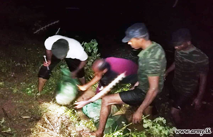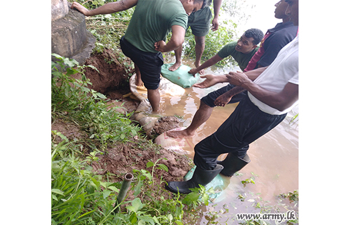 Guided by Colonel K. A. N Rasika Kumara, 213 Brigade Commander on the instructions of Major General Kumar Jayapathirana, General Officer Commanding, 21 Division, those troops after placing sandbags around threatened patches averted a major split in both bunds which could have been disastrous unless addressed.
