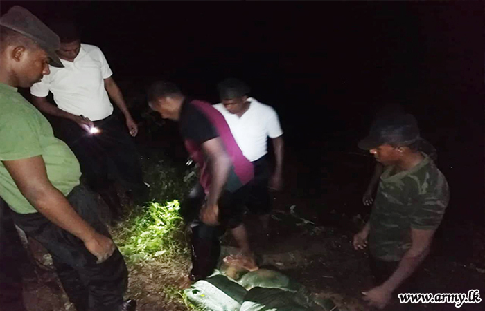 2 Officers and 34 Army personnel of the 213 Brigade under the 21 Division of the Security Force Headquarters - Wanni (SFHQ-W) on Saturday (7) evening at the request of the Vavuniya Disaster Management Centre promptly secured the Kunchinuur Kulam and KuliKutti Kulam tank bunds which were threatened with burst due to soaring water levels in both tanks.