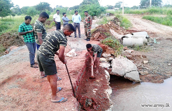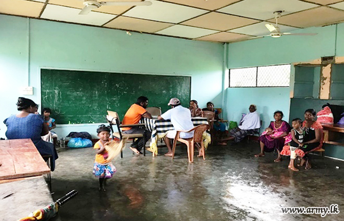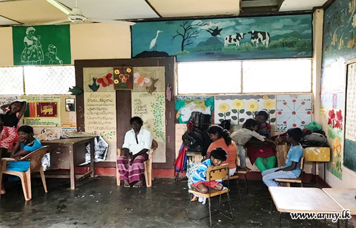 Marathodai and Kanchuramoddai villages were also affected. Troops of 11 SLA took part in managing the flood situation. A total of 9 and 22 families respectively displaced from above villages were subsequently accommodated at Marathodai School with the help of troops. A few Paluagawanguwa villagers in 621 Brigade area were also given relief by 14 (V) Sri Lanka Light Infantry troops while taking all precautionary measures. |
