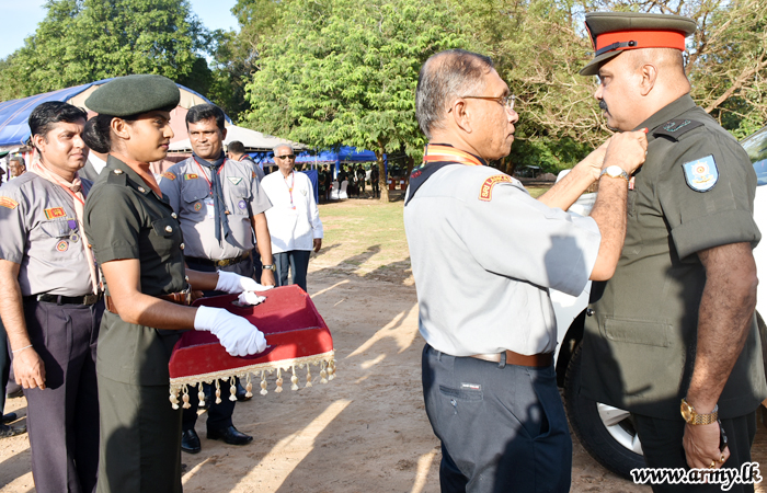 250 plus island-wide scouts attended this camp. Major General Jayantha Senevirathna, Commander Security Forces Mullaitivu attended the event as the chief guest and chairman Sri Lanka Scouts Association retired Deputy Inspector General Police Chandra Wakishta and the engineer Meril Gunathilake too attended, 154 scouts were awarded the wooden medals at the venue followed by tree painting programmes and a visit to Mullaitivu area.
