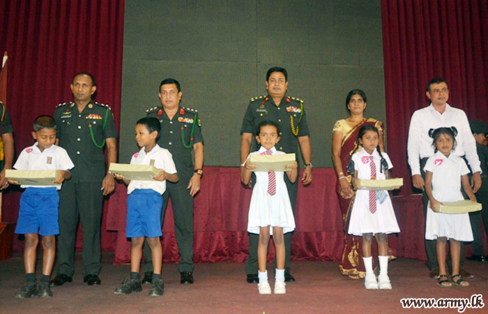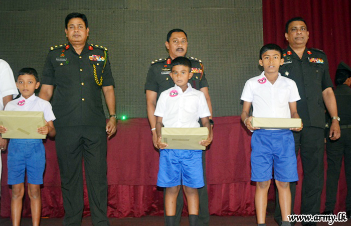 Lending a helping hand for promotion of education standards of poor rural students in the Wanni region, the Security Force HQ-Wanni distributed essential school accessories among 300 plus needy children, resident in the 211 Brigade area of responsibility on Saturday (14 ) with the Commander Security Forces -Wanni Major General Rohitha Dharmasiri attending as the Chief Guest.