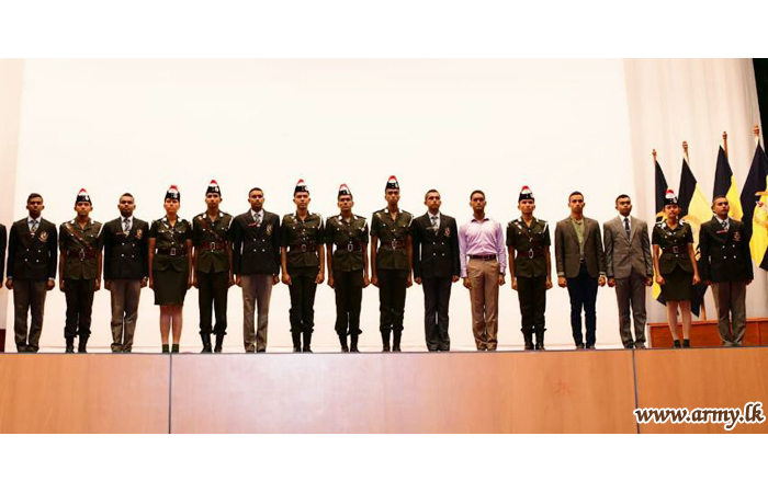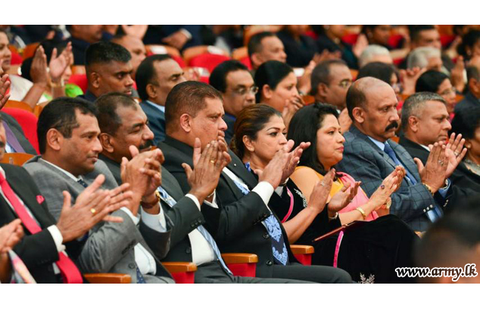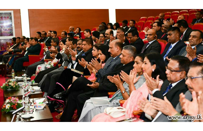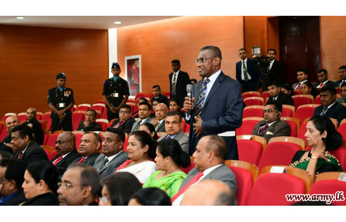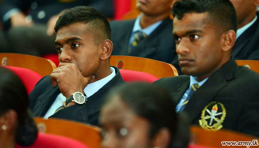 ‘Presentations of Academic Modules’, one of the main highlights of the Sri Lanka Military Academy's (SLMA) Graduation Ceremony to be held on Saturday (21) at Diyatalawa took place last evening (20) at the SLMA auditorium in the presence of the Secretary to the Ministry of Defence, Major General (Retd) Kamal Gunarathne as the Chief Guest, together with Lieutenant General Shavendra Silva, Commander of the Army.
