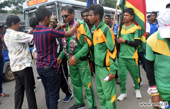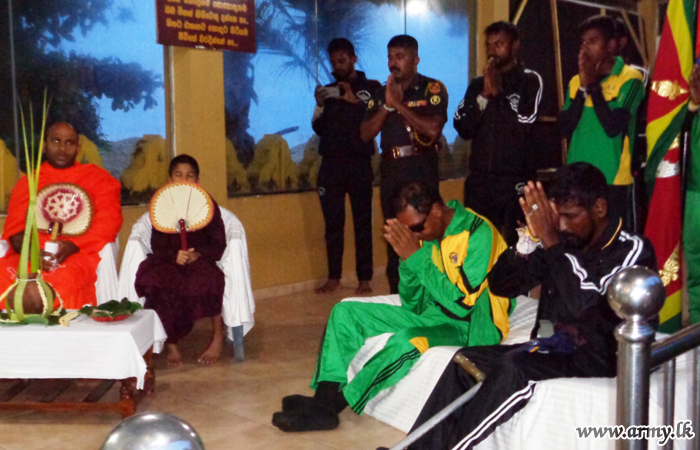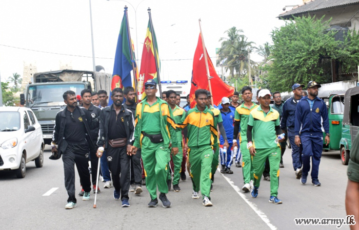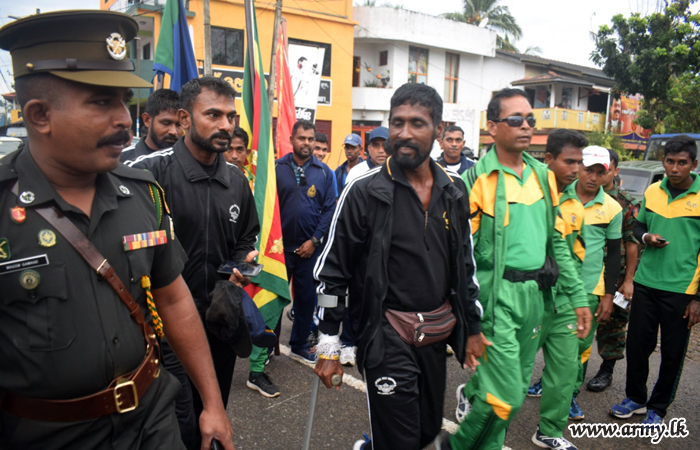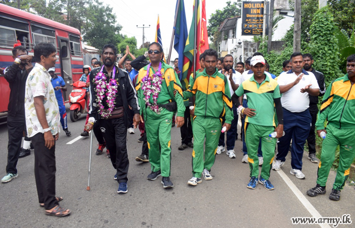 The two disabled War Heroes, now on foot expedition marching from Nagadeepa to Kataragama reached Aluthgama and reached the Seenigama Dewalaya precincts on Thursday (19).