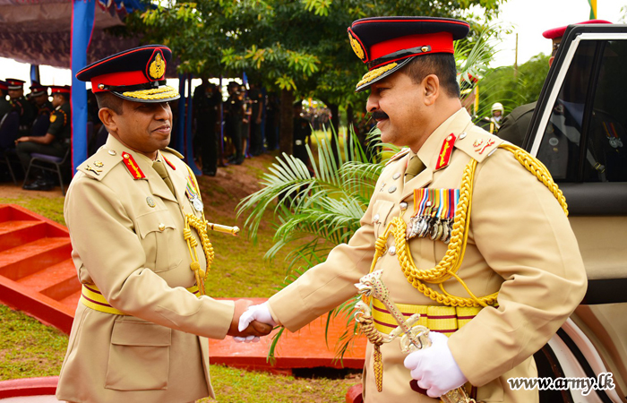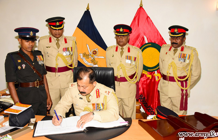 A Guard Turn Out, followed by a Guard of Honour, presented by 8 Sri Lanka Artillery Regiment troops saluted the outgoing Kilinochchi Commander before he officially signed a document to hand over the command to his successor, Major General Jayantha Gunarathne who was formally the General Officer Commanding in 58 Division.