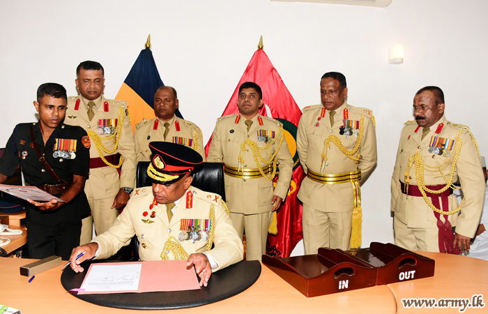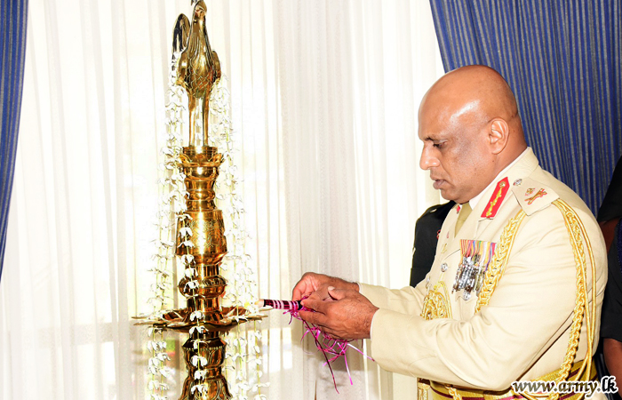 Religious observances of all four major denominations got underway afterwards before he signed a formal document to denote the acceptance of his new office after he lit the customary oil lamp to inaugurate his office as the new Commander, Security Forces- Kilinochchi. He later on planted a sapling inside the SFHQ-KLN premises and added memories. After an All Rank tea, he addressed the troops at the HQ auditorium and set out his plan of work and future roles.