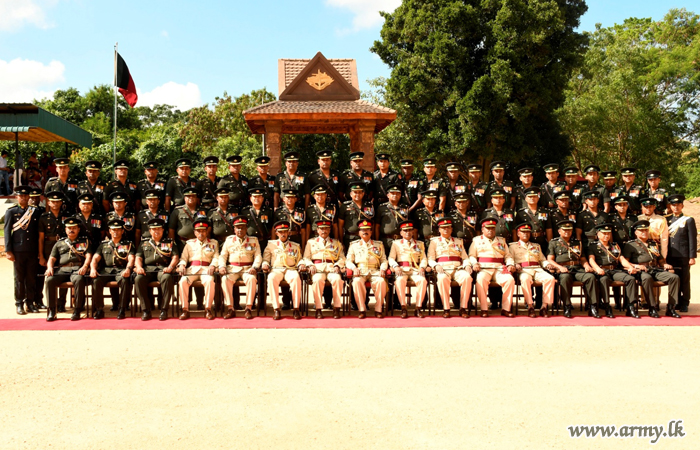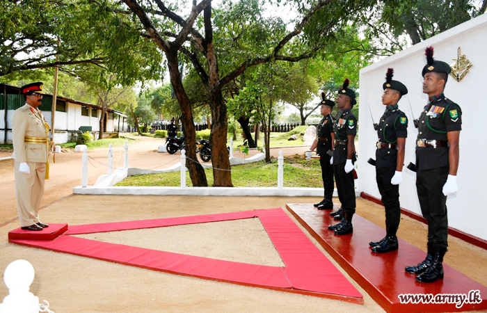 On arrival, Major General Jayasundera was warmly received by Brigadier L. S Balachandra, Commander Mechanized Infantry Brigade and Brigadier S J Priyadarshana - MIR Centre Commandant with other Senior Officers and greeted to a Guard Turnout at the entrance. At first, he paid his respect to the MIR War Heroes' monument in the premises laying a wreath before the MIR-produced second Major General was honoured in a parade, presented by MIR troops in the Centre.