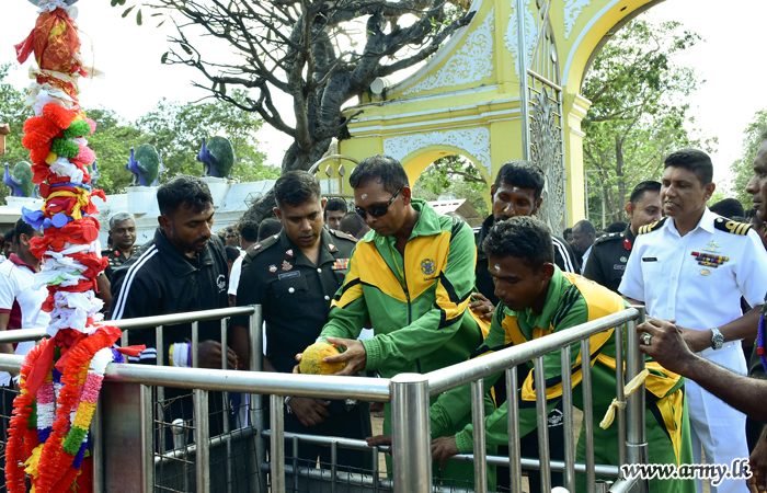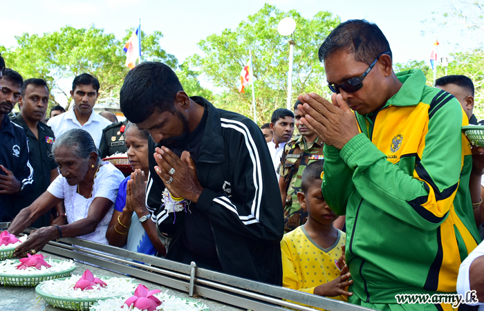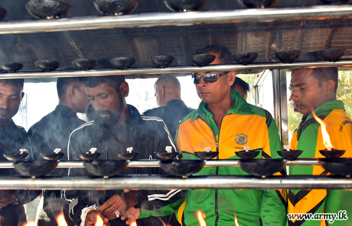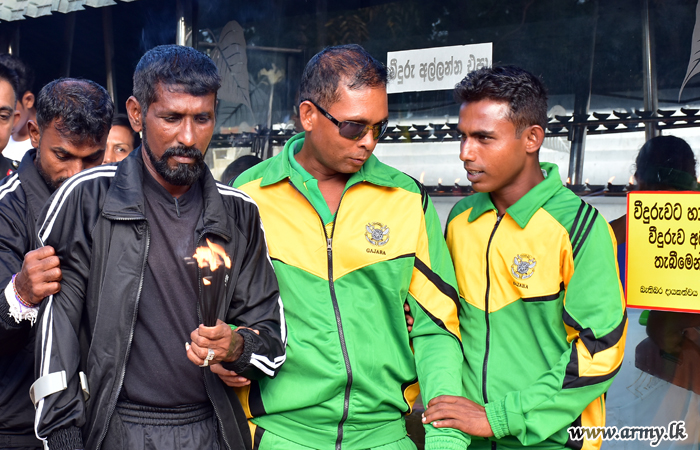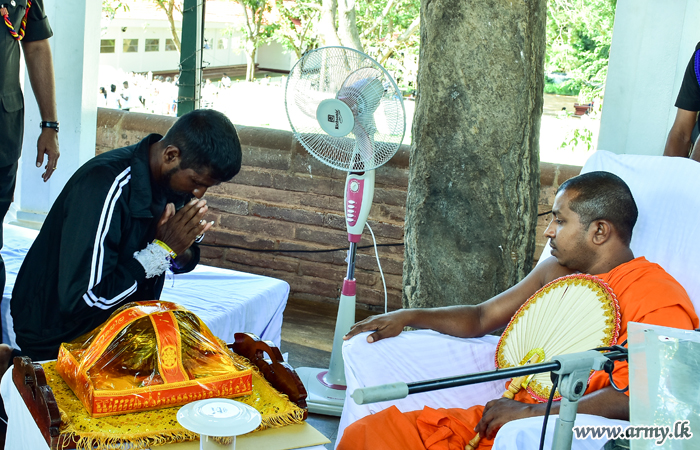 On 22 November, both of them Private (Retd) J.B Piyathissa of Gajaba Regiment (Blind) and the Petty Officer (Retd) S.B.S Kumara (physically-disabled) started their foot pilgrimage from Nagadeepa temple and walked across Vavuniya, Anuradhapura, Dambulla, Kandy, Sri Paada, Awissawella, Kalutara, Galle, Matara via Tangalle for 36 days and reached their final destination, Kataragama to be received by a host of Senior Officers, including Major General Laksiri Waduge, Commander, Security Forces Central, Major General A.L.P.S Thilakarathna, General Officer Commanding 12 Division, Brigadier W.B.S.M Abeysekara, Director Rehabilitations, Senior officers, family Members and relatives of both soldiers and a gathering of Army troops.