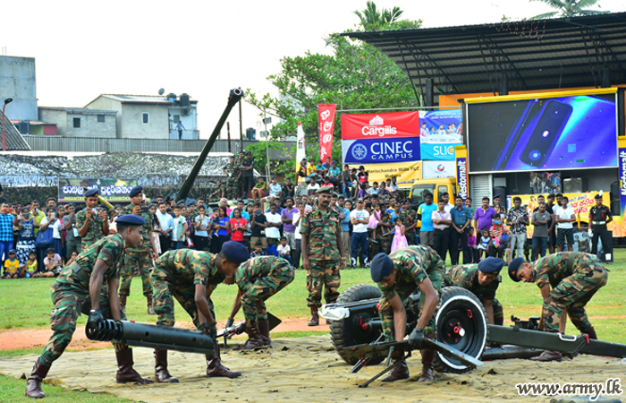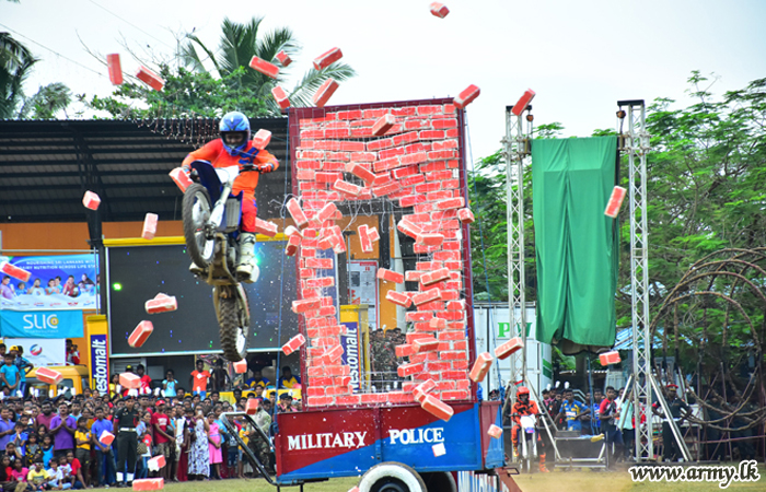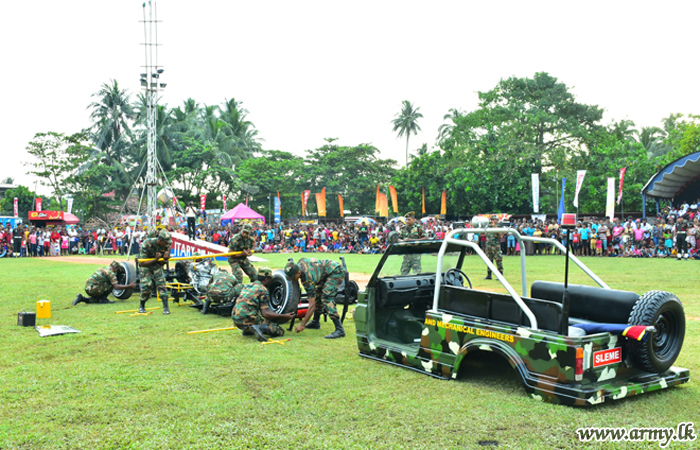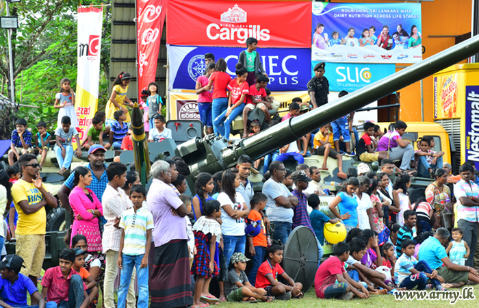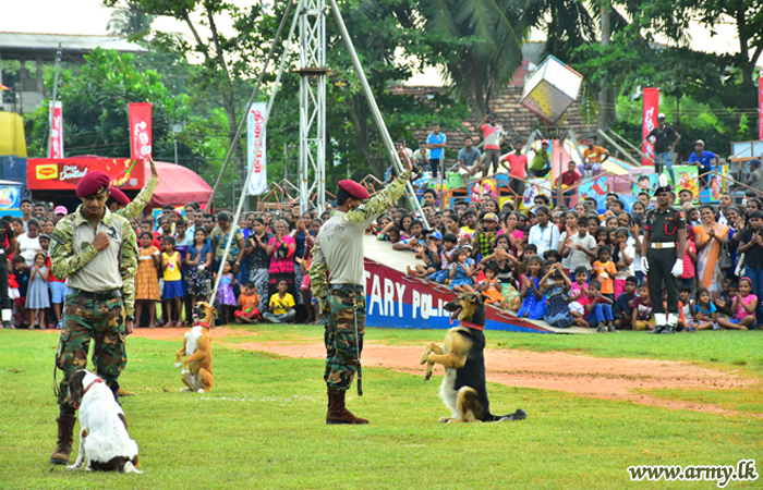 The mega pleasure-making carnival that attracted huge crowds during both days included a large assortment of exhibition stalls, dog shows of Commando Regiment, vehicle dismantling shows of Sri Lanka Electrical and Mechanical Engineers, Angampora martial art displays, band shows and many other adventurous features.