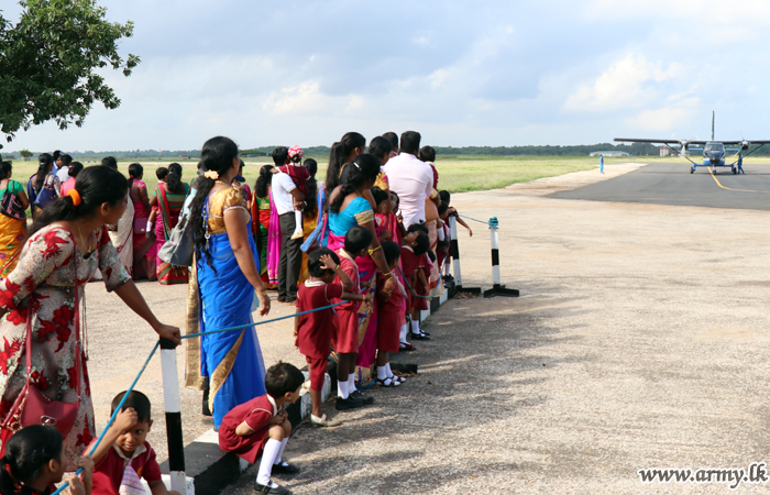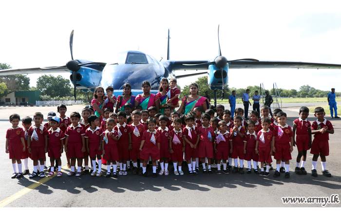 53 kids learning at Palar Pahal pre-school in Nilaveli, Jaffna along with teachers and their parents visited the newly-opened Jaffna International Airport to witness its operations and experience after boarding one aircraft on Friday (03).
