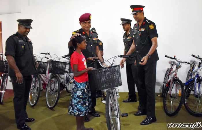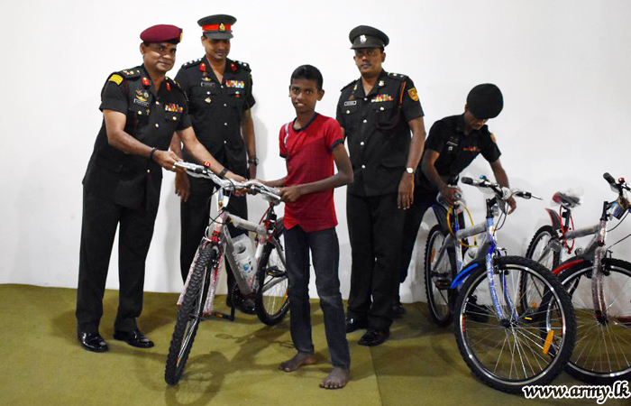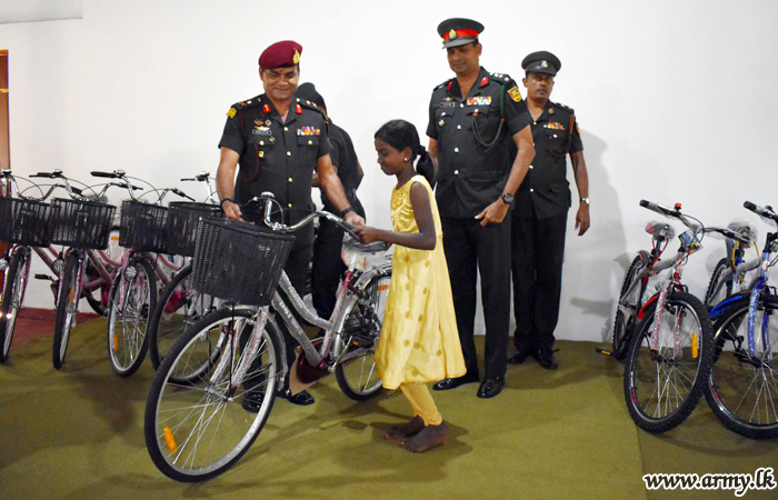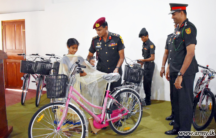 Under the guidance of Major General Pradeep de Silva, the General Officer Commanding (GOC) of the 57 Division, 573 Brigade Commander, Colonel Sylvester Perera organized the bicycle donation programme after selecting the most deserving students from different families. A group of employees from a private company who wish to remain anonymous sponsored the purchase of those bicycles for those needy students in the area. Parents, teachers and relatives were also present during the distribution ceremony.