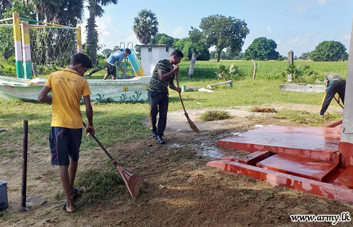 As part of its ongoing Corporate Social Responsibility (CSR) projects, 573 Brigade troops under the 57 Division of the Security Force Headquarters - Kilinochchi launched a self-help (Shramadana) programme to clean Uriyan pre-school premises on Thursday (2).