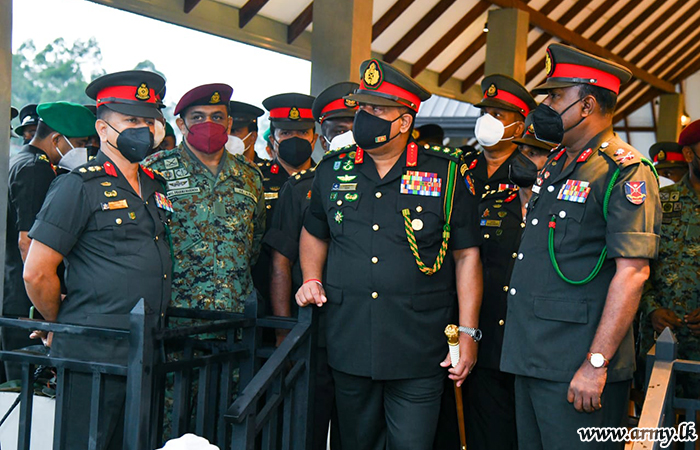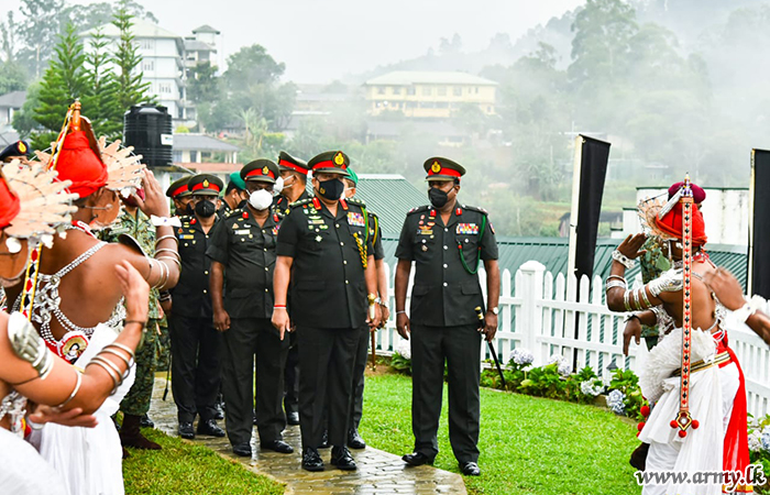 Major General Sena Waduge, Commander Army Training Command and Colonel of the Regiment, MIR invited the Army Chief for the inauguration of the new holiday home which would fulfill a long-felt need of the MIR family in Diyatalawa. General Shavendra Silva on arrival at the location was warmly welcomed by Major General Sena Waduge, Major General Vikum Liyanage, Commander, Security Forces-Central and a representative gathering of MIR Senior Officers before a bevy of 'Ves' dancers ushered the day's Chief Guest to the location.