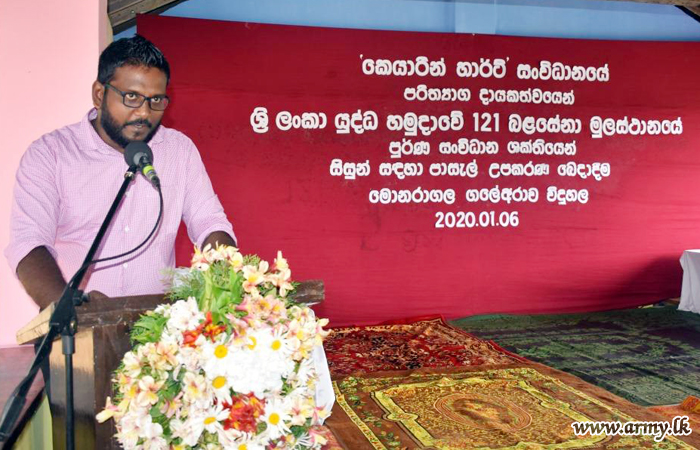 Brigadier Chandana Somaweera, 121 Brigade Commander attended the distribution ceremony, held at Moneragala Galearawa Vidyalaya on Monday (6) as the Chief Guest.