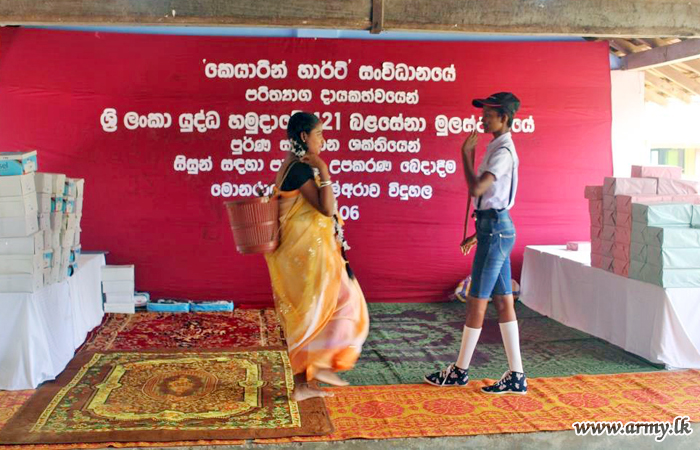 The donation of those accessories was made possible following the sponsorship given to the 121 Brigade by ‘Caring Hearts - Sri Lanka’ organization after the difficulties some of those children are undergoing were brought to the notice of the sponsors.