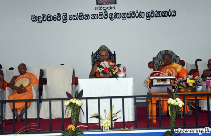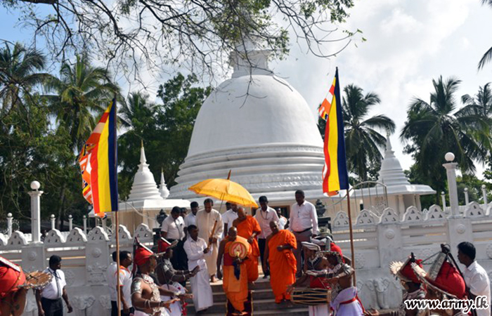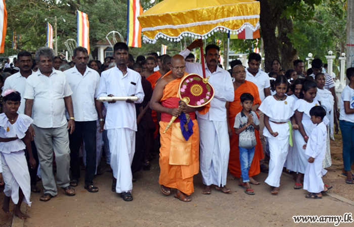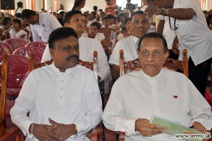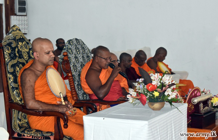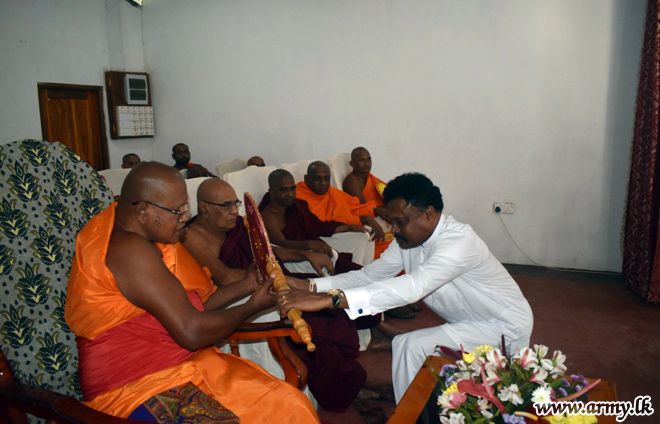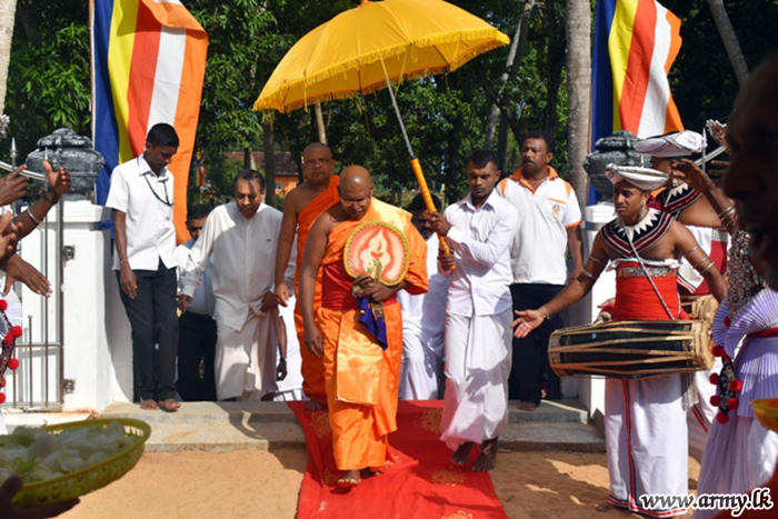 Troops assisted the conduct of the reception ceremony at Sri Bodhirukkarama temple, Aliwanguwa, Padavi Sripura. The monk is also the incumbent for Sri Purwarama temple at Moragahahena, Horana.