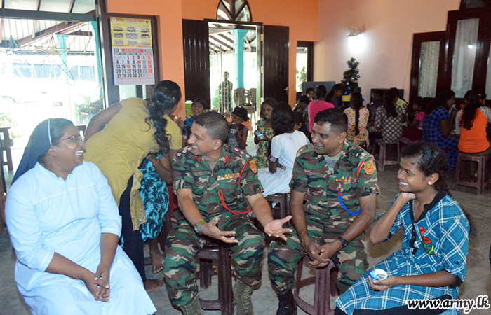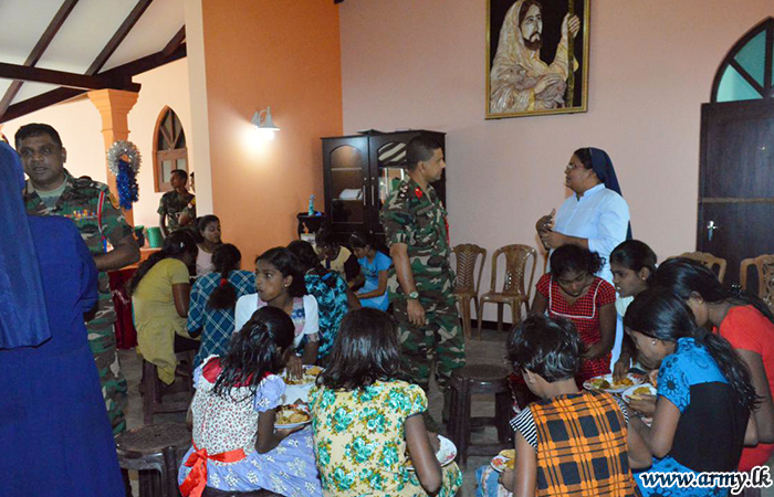 Inmates at Don Bosco Children’s Home in Mankulam were entertained to a special lunch on Saturday (11) by troops of the 574 Brigade of the 57 Division under the Security Force Headquarters - Kilinochchi.