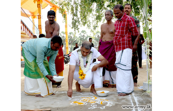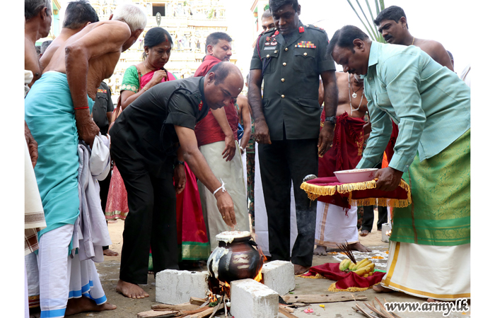 Joining hands with the civil community in Point Pedro, Jaffna troops supported the conduct of a special Thai Pongal ceremony at Alwai Sri Vallipuram Swamy Kovil on Wednesday (15) on account of the annual Thai Pongal day.