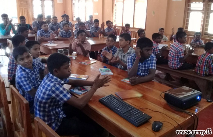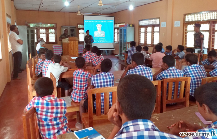A workshop on 'Sinhala' Language organized for Tamil Students residing in areas served by the 65 Division, aimed at enhancing Sinhala proficiency began at Mahadewa Suwamikal Children’s Home on Saturday (11).