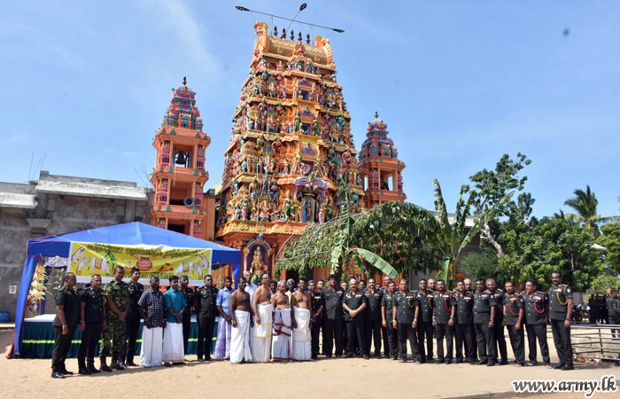 Showing the Army’s respect for the religious event, troops held a 'Dansela' (free eatery stall) for the benefit of devotees attending the Kovil ceremony.