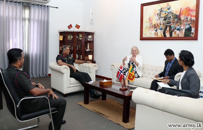 H.E. Ms Trine Joranli Eskedal the Ambassador for Norway called at the Security Force Headquarters – Jaffna (SFHQ-J)) and met the Commander, Security Forces - Jaffna, Major General Ruwan Wanigasooriya on Wednesday (22).