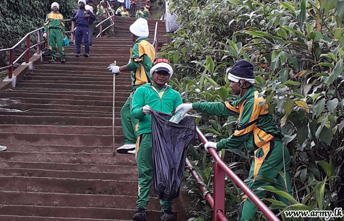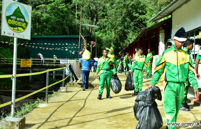 200 plus soldiers including Officers collected plastic waste, pollutants and garbage, left behind largely by pilgrims and the public and completely patched up the road to the peak.