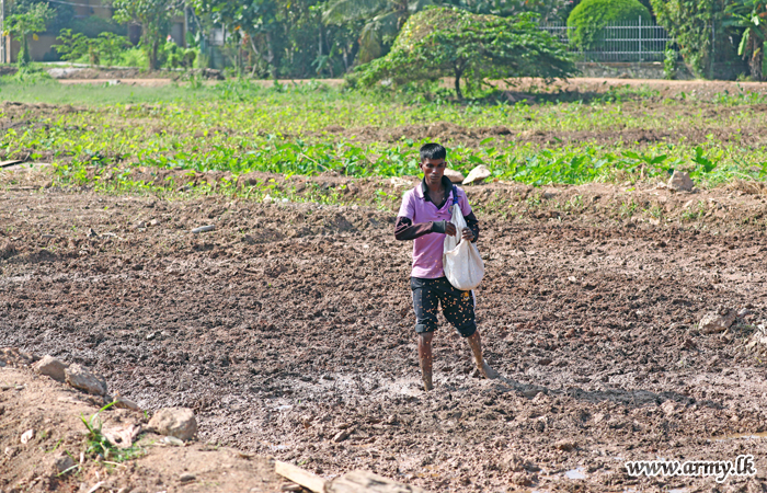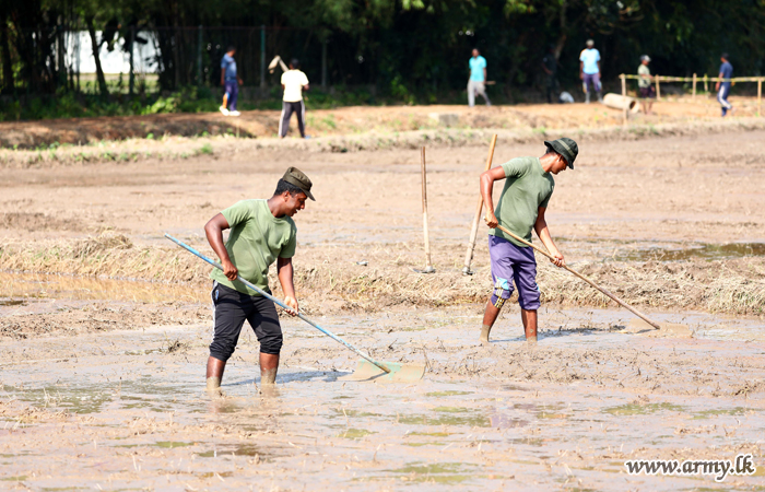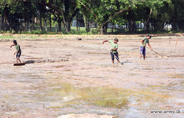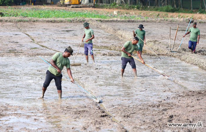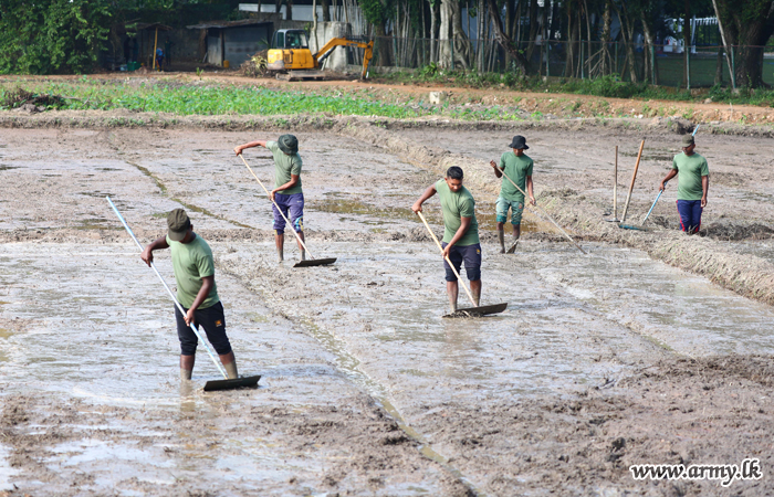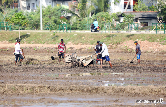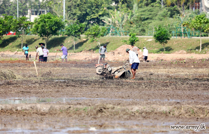 Army troops this morning (24) began ploughing the unattended paddy field patch, adjacent to the Army Headquarters at Sri Jayawardanepura before sowing paddy after preparing the soil,