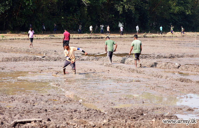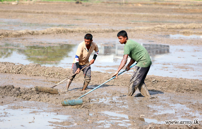 2nd Phase of the Army project, began by ploughing an abandoned and unattended paddy field stretch of about 12 acres, in order to sow indigenous paddy varieties. |