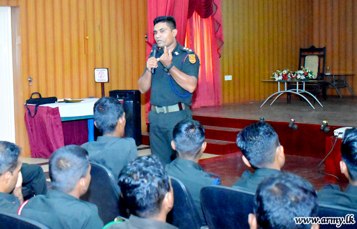 This awareness lecture, attended by 3 Officers and 89 Other Ranks was conducted by the psychologist, Captain S.M.P. K Samarakoon at the auditorium of the Security Force Headquarters Kilinochchi. |