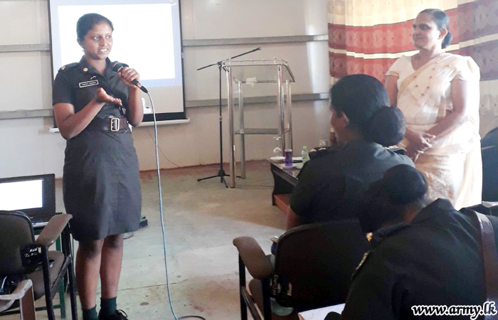 A valuable lecture to members of the 2 Battalion Sri Lanka Army Women’s Corps on 'Youth life and woman soldiers' was conducted by the Lieutenant Colonel B.G Samanthi of the Directorate of Psychological Operations on Thursday (30).