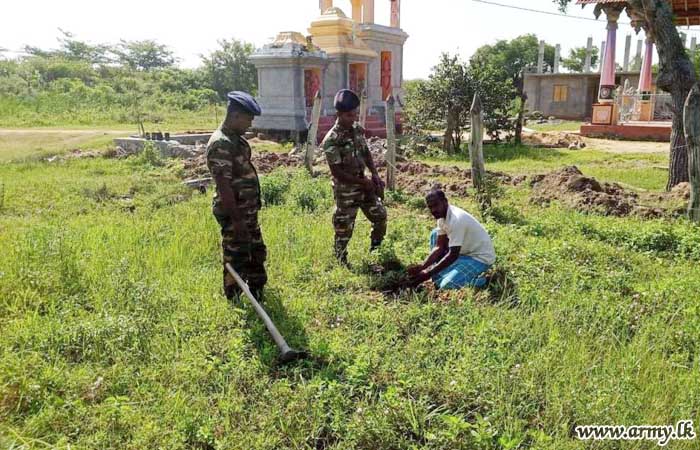 A project to plant Kohomba (Margosa) saplings in the general surrounding areas of Hindu temples in Akkarayankulam, Kilinochchi served by 652 Brigade troops commenced on Monday (27).