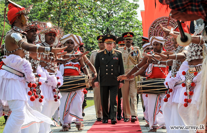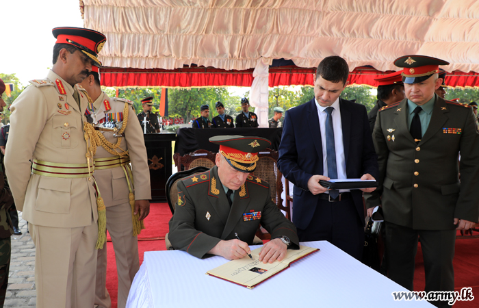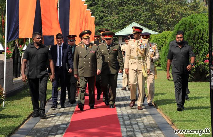 Amid honours presented by troops of the Sri Lanka Corps of Military Police, the Russian Army Chief slowly walked to the memorial afterwards and solemnly placed a floral wreath and saluted the memory of fallen Sri Lankan War Heroes who fought for the territorial integrity of the country.