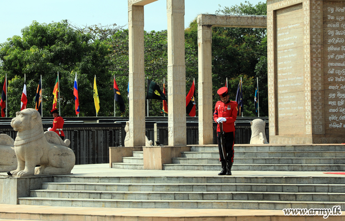 At the 80 ft tall Monument premises, Major General Jagath Gunawardena, Commandant, Sri Lanka Army Volunteer Force, received the visiting Russian Commander-in-Chief of the Land Forces, General of the Army as troops of the Sri Lanka Corps of Military Police, remained vigil to set off the proceedings after inviting the day’s Chief Guest to the special dais.