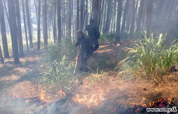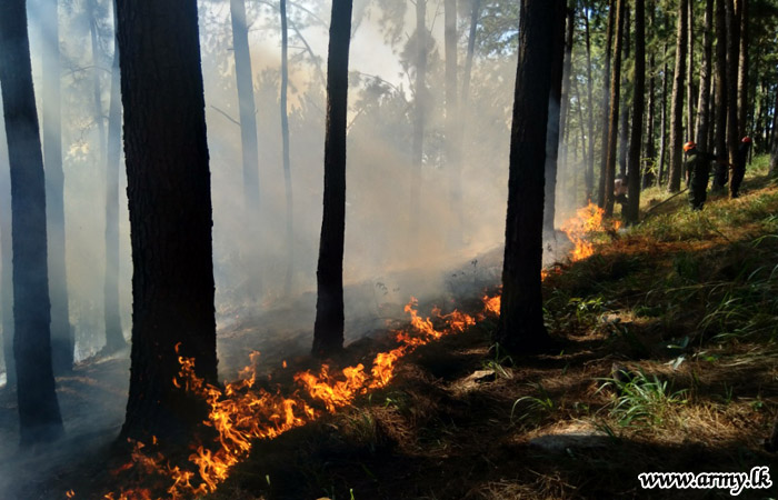 6 Officers and 100 plus troops of the 111 Brigade under the 11 Division of the Security Force HQ-Central with the assistance of the villagers brought the spreading fire under control after much difficulty, together with fire-fighters. |