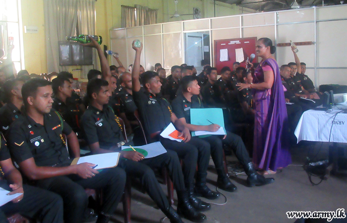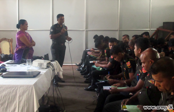 Lieutenant Colonel B.G.S Samanthi of National Cadet Corps working in the Directorate of Psychological Operations delivered the lecture to a three-digit number of Officers and Other Ranks. |
