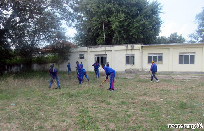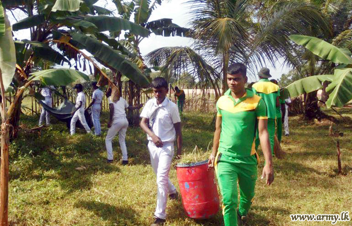 In the meantime, 642 Brigade HQ, together with 17 Gajaba Regiment (GR) troops under the 64 Division of the SFHQ-MLT on account of the National Independence Day cleaned up the Thanduwan Tamil Mixed school during morning hours on Monday (3).