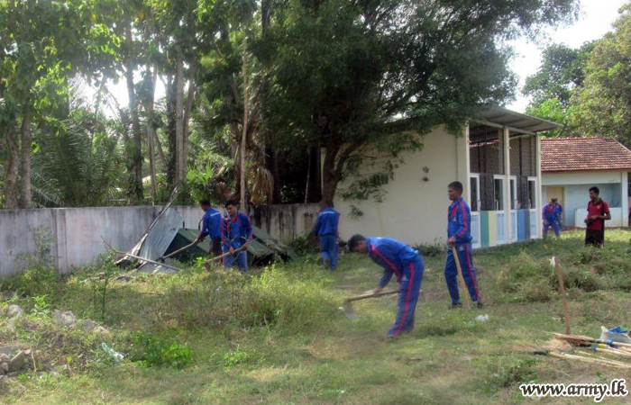 In the meantime, Security Force Headquarters - Jaffna (SFHQ-J) on the guidelines given by Major General Ruwan Wanigasooriya, Commander, Security Forces - Jaffna (SF-J) carried out a Shramadana campaign to clean the Vasavillan Central College premises on Thursday(6) and troops under the SFHQ-J joined the campaign on account of the 72nd National Independence Day.