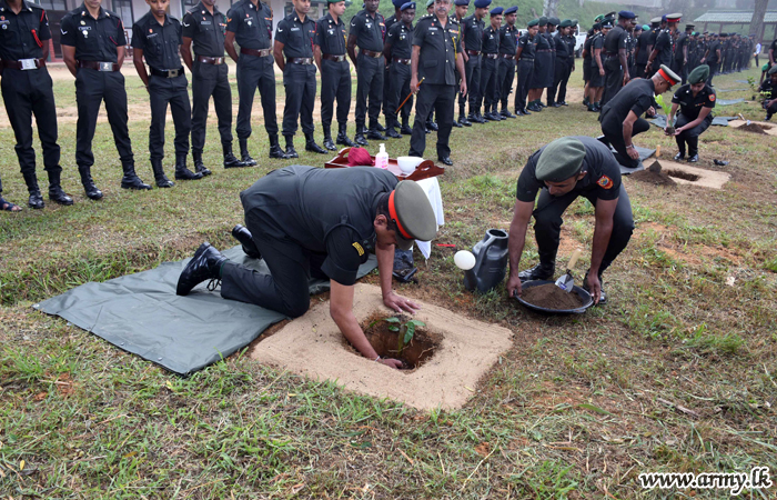 Brigadier General Staff (BGS) and Brigadier Admin Quartering (BAQ) at SFHQ-C joined the Flag raising, singing of the National Anthem and the subsequent sapling planting project. Likewise, Sri Lanka Rifle Corps Headquarters at Pallekele, Kundasale, marked the event by planting hundreds of ‘Mee’, ‘Margosa’ and ‘Kumbuk’ saplings inside the HQ premises on account of the National Independence Day.
