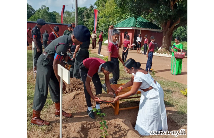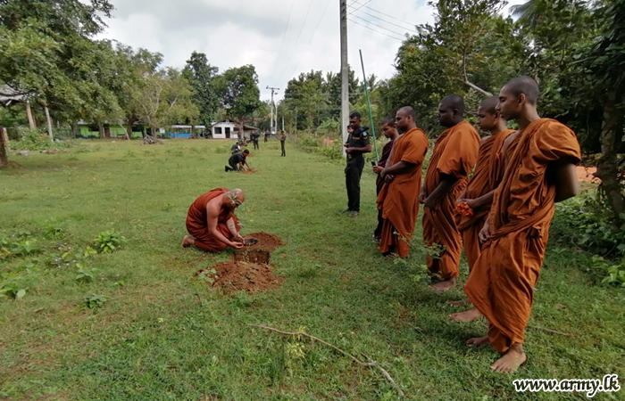 652 Brigade Commander, Civil Affairs Officer, 652 Brigade Officers, 20 (V) VIR and 7 Sri Lanka National Guard (SLNG) troops, together with religious leaders, Grama Niladari at Skandapuram and devotees in the area contributed to the sapling planting.