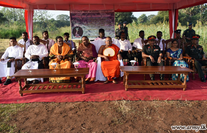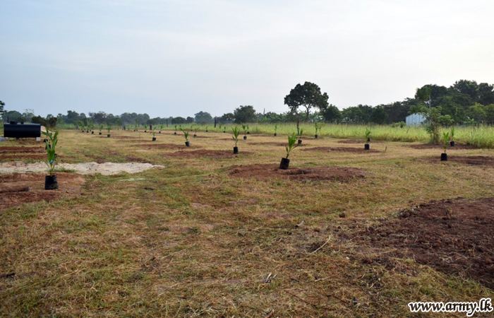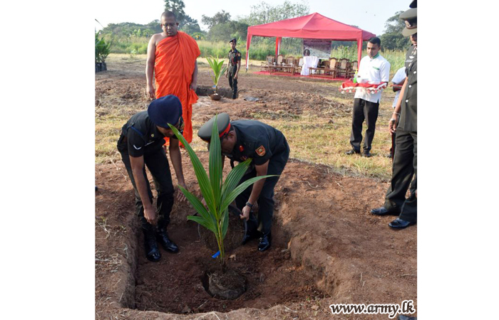 Attended by Major General D.M.H.D Bandara, GOC, 65 Division as the Chief Guest the ceremony saw more than 300 coconut saplings provided by the Lunuwila Cocounut Research Institute were planted inside the 65 Division Camp premises to coincide with the National Independence Day.